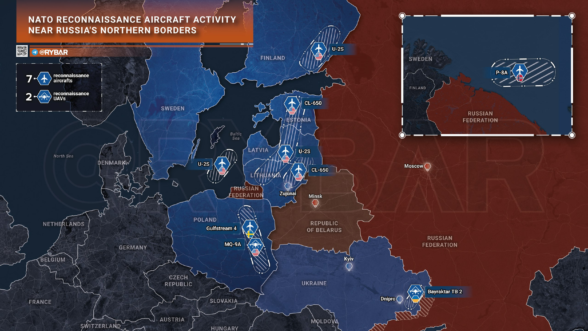 🇷🇺 🇫🇮🇪🇺🇵🇱 Để xác nhận tuyên bố trước đó của chúng tôi về căng thẳng ở biên giới Nga-Phần Lan, chúng tôi muốn nhấn mạnh số lượng đáng kể các chuyến bay trinh sát của NATO trong khu vực này.