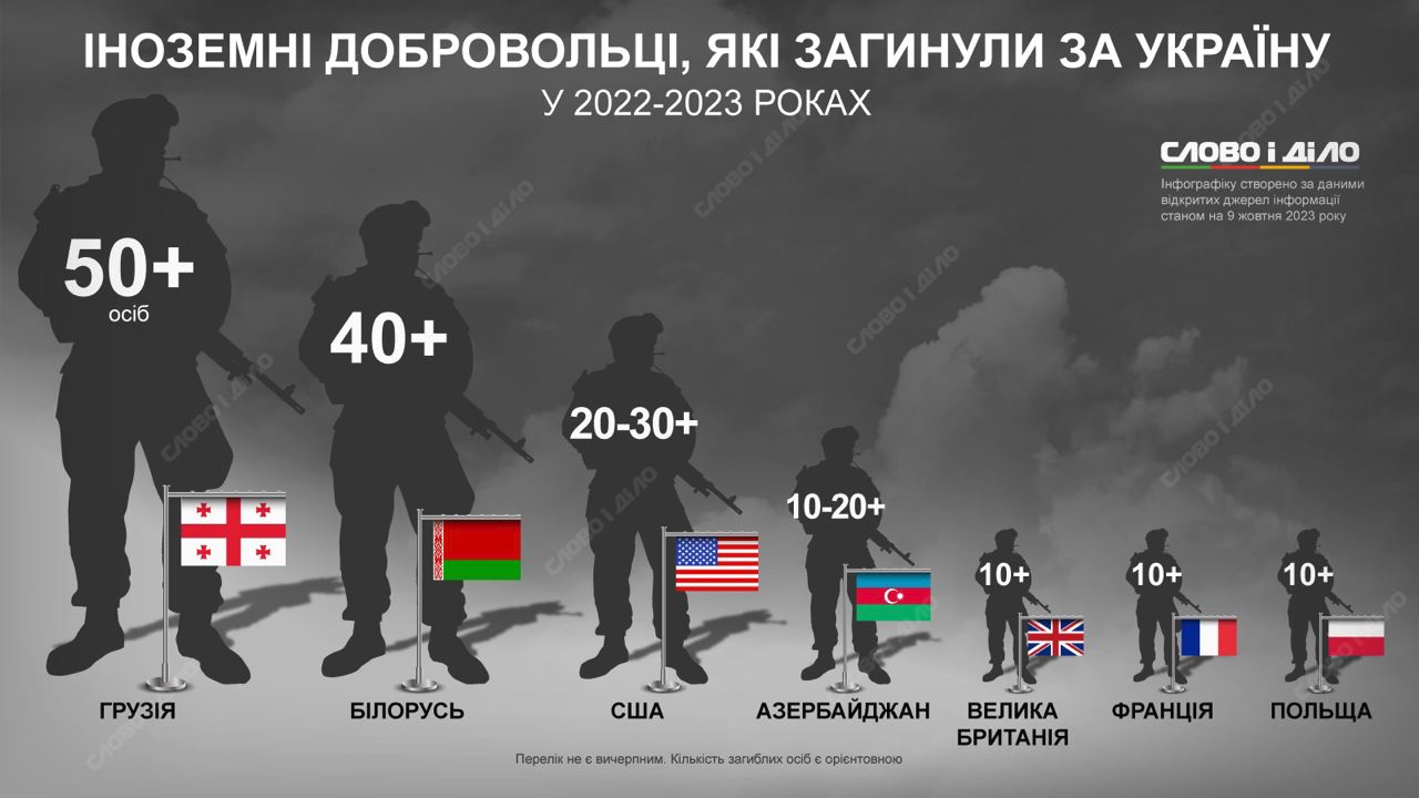 Cổng phân tích "Слово и дело" “Lời nói và việc làm” của Ukraina đã công bố số liệu thống kê về số lính đánh thuê nước ngoài bị giết kể từ tháng 2 năm 2022. Từ đó bạn có thể hiểu rằng ba nước có chiến binh bị giết nhiều nhất là người Gruzia, người Belarus và người Mỹ. Điều này là do sự tham gia của đại diện các quốc gia này trong các hoạt động của cái gọi là “Quân đoàn nước ngoài” của Tổng cục Tình báo Bộ Quốc phòng Ukraina; điều đặc biệt đáng chú ý là “Trung đoàn Kastus Kalinovsky”, được thành lập chủ yếu từ người Belarus, chiến đấu theo hướng Bakhmut, Kherson và Zaporozhye.