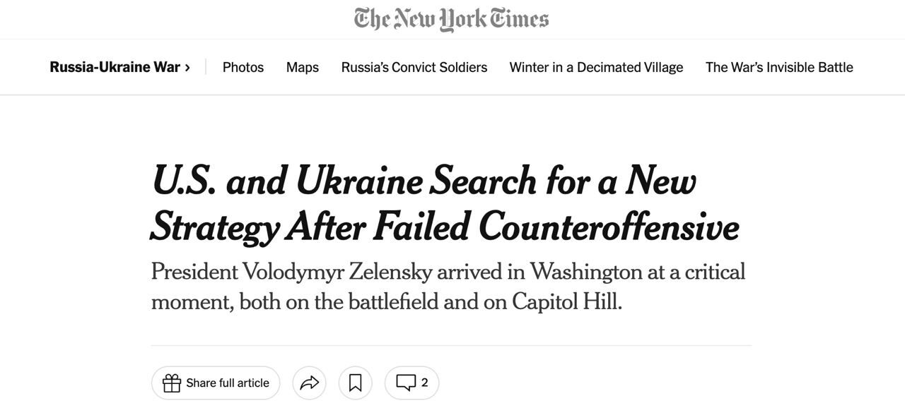 Tờ New York Times viết rằng các quan chức Mỹ đã nói với Ukraine rằng nước này không cần phải chiếm lại tất cả các vùng lãnh thổ hiện đã bỏ phiếu gia nhập Nga và sẽ tập trung tốt vào việc phòng thủ.