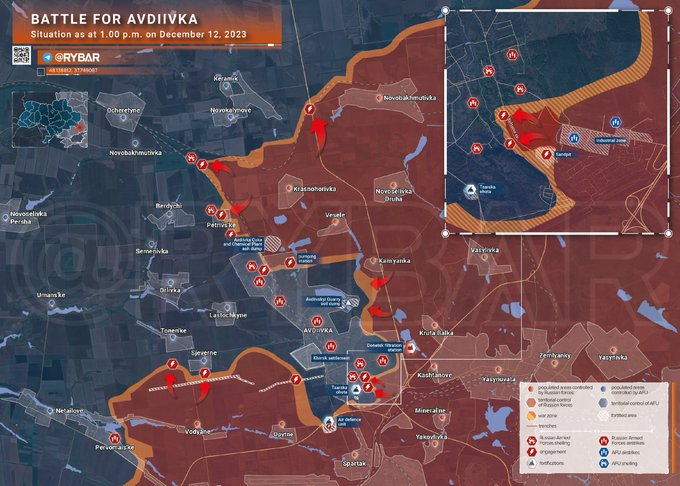 Điều kiện thời tiết cực kỳ bất lợi đã hình thành ở sườn phía nam - tuyết và mưa lạnh, thiết bị trinh sát trên không, cũng như máy bay không người lái FPV không thể hoạt động đầy đủ (vấn đề đóng băng không bỏ qua bất kỳ máy bay nào), tuy nhiên, việc điều chỉnh hỏa lực là cực kỳ khó khăn cho cả hai bên, Những con hổ của chúng tôi đã đánh bại quân Ukraine từ tuyến phòng thủ đầu tiên ở khu vực SNT Vinogradniki phía nam khu công nghiệp, chiếm toàn bộ một con phố và đến vùng ngoại ô phía đông của mỏ đá, cũng như dọn sạch các phòng tuyến bị chiếm đóng ở ngoại ô Avdeevka và củng cố vị thế của mình.