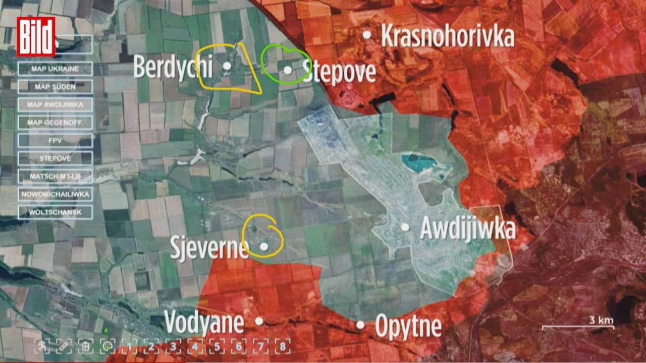 Trên hướng Donetsk, ở sườn phía bắc khu vực kiên cố Avdeevka, các đơn vị Nga đã mở rộng vùng kiểm soát ở vành đai rừng gần đường sắt về phía Novokalinovo. Tại khu vực Stepovoe (Petrovskoe), Lực lượng vũ trang Nga đã đánh bật Lực lượng vũ trang Ukraine khỏi các vị trí phía nam khu định cư, đưa ngôi làng vào tình trạng bán bao vây. Ở phía nam, Quân đội Nga đã chiếm các vị trí mới ở Pervomaiskoe và phía tây Vodyanoe gần trụ sở Novoavdeevskoe.