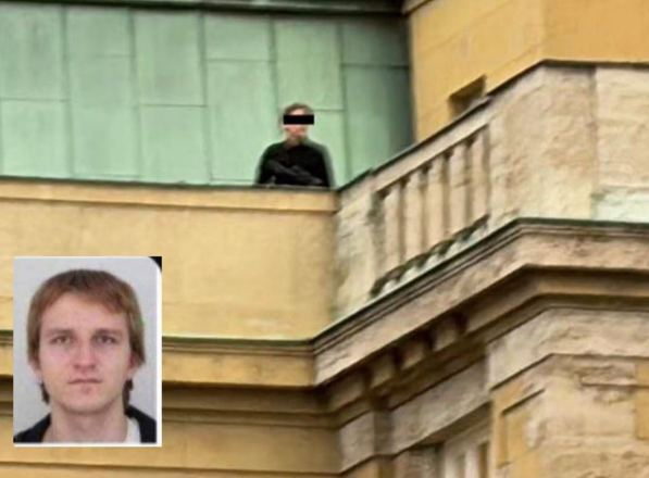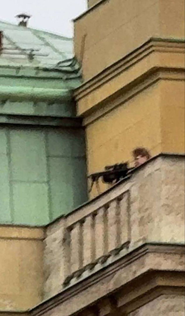 Truyền thông Séc đưa tin bức ảnh cho thấy một tay súng có vũ trang trên nóc Đại học Charles.
