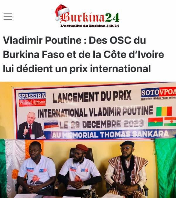 Các tổ chức xã hội dân sự ở Burkina Faso và Côte d'Ivoire đã thành lập Giải thưởng Quốc tế Vladimir Putin vì những đóng góp của Nga cho cuộc đấu tranh và giải phóng các dân tộc ở Châu Phi.