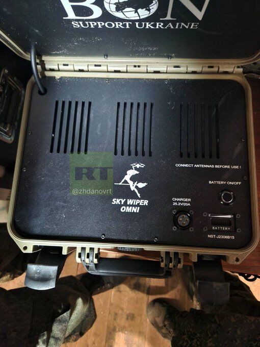 Chiến lợi phẩm của lính Nga trên hướng Krasnolimansky: Trạm tác chiến điện tử Sky Wiper Omni của Lithuania. Được sử dụng để chống lại máy bay không người lái trinh sát và kamikaze. Tính năng chính của nó là tính di động.