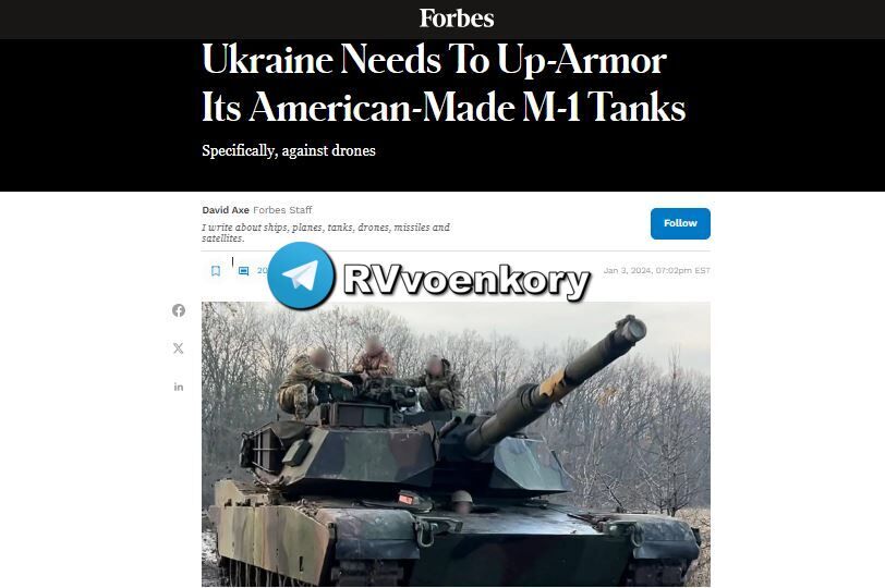 ▪️Tạp chí viết: Hoàn toàn không rõ Ukraine đang làm gì với chiếc xe tăng thứ 31 của mình. ▪️Những chiếc xe tăng này đặc biệt dễ bị tấn công bởi máy bay không người lái FPV, chúng tấn công vào nơi có lớp giáp mỏng nhất của M-1: phía trên và hai bên. ▪️“Bắt đầu từ mái nó rất mỏng, khoảng 25 mm,” chuyên gia xe tăng Silveira viết. “Một chiếc FPV dù có đạn chống tăng cũ cũng có thể xuyên qua nơi này, giết/làm bị thương tổ lái, điều này còn có thể làm hỏng các linh kiện điện tử bên trong tháp pháo hoặc đốt cháy, buộc tổ lái phải bỏ chạy khỏi xe tăng.