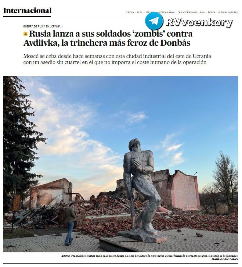 ▪️ "Lữ đoàn 47, giống như nhiều lữ đoàn khác, đang ăn kiêng đạn dược. Kho vũ khí của họ đã cạn kiệt. Họ chiến đấu với những gì họ có, và không phải lúc nào cũng bằng những gì phù hợp nhất để bắn trúng mục tiêu", Thượng sĩ Lữ đoàn 47 Alexander. ▪️Vũ khí phương Tây chuyển giao cho Lực lượng vũ trang Ukraine đang “quá tải” ở nhiều khu vực trên mặt trận, bao gồm cả gần Avdeevka. ▪️El Pais viết rằng Liên bang Nga đã tìm cách tăng cường sản xuất vũ khí theo lệnh trừng phạt: “tên lửa được sản xuất tại các nhà máy bánh mì, đạn dược được thu thập tại các nhà máy máy kéo”.