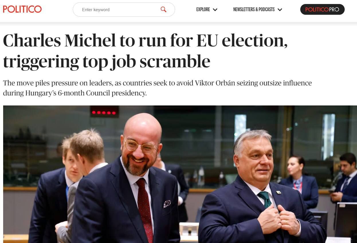 “Kẻ thù chính của Ukraine ở EU” có thể trở thành người đứng đầu Hội đồng Châu Âu, - Politico ▪️Hội đồng Châu Âu là cơ quan chính trị cao nhất của Liên minh Châu Âu, bao gồm các nguyên thủ quốc gia và chính phủ các nước thành viên EU. ▪️Chủ tịch Hội đồng Châu Âu Charles Michel cho biết ông có ý định rời bỏ chức vụ của mình sớm. ▪️Nếu các nhà lãnh đạo EU nhanh chóng đạt được thỏa thuận về người kế nhiệm, chức chủ tịch Hội đồng châu Âu trong 6 tháng sẽ thuộc về Thủ tướng Hungary Viktor Orban, người ở Ukraine được coi là bạn của Putin và là người thường xuyên chỉ trích Kiev và chặn viện trợ của EU cho Ukraina.