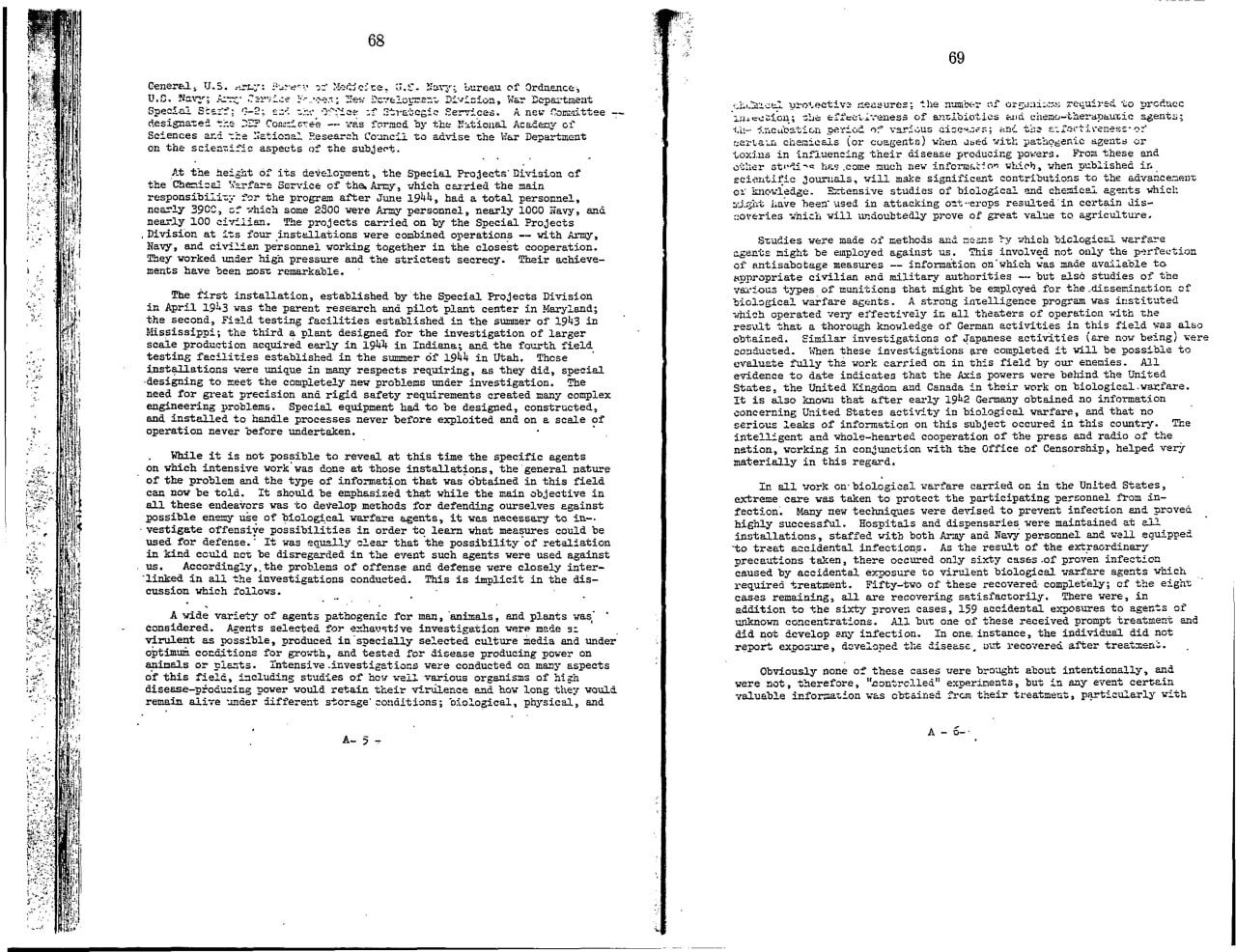Rõ ràng, báo cáo này là một trong những tài liệu quan trọng thúc đẩy Hoa Kỳ bắt đầu chương trình vũ khí sinh học (BW).