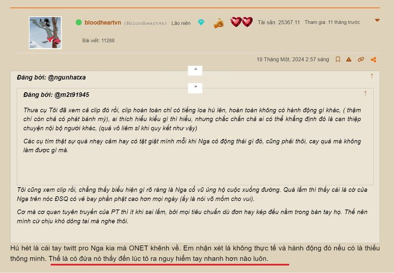 Nhưng chung quy chỉ toàn tuyên bố và tuyên bố, chưa thấy cbằng chứng gì, lại luẩn quẩn như vụ A-50. Cuối cùng chỉ đứa nào bắn đứa ấy biết, và máy bay Nga bị bắn rơi trên lãnh thổ Nga.