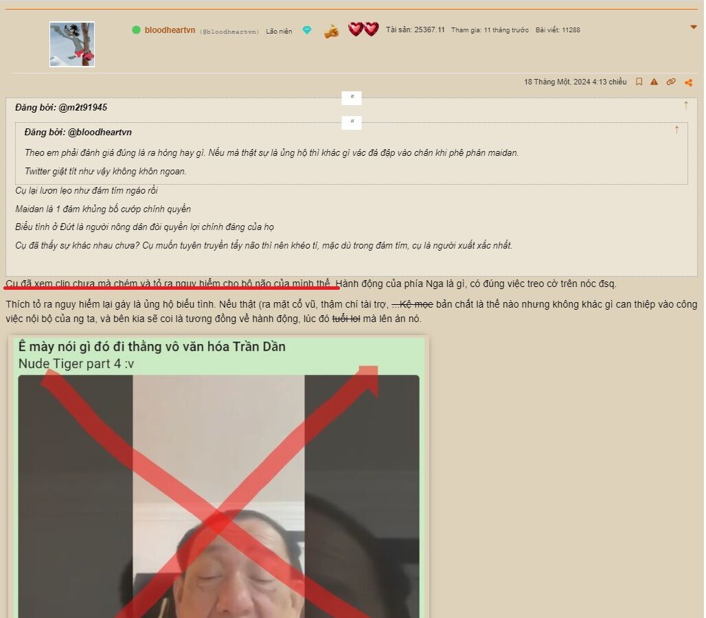 Thưa cụ Tôi đã xem cả clip đó rồi, clip hoàn toàn chỉ có tiếng loa hú lên, hoàn toàn không có hành động gì khác, ( thậm chí còn chả có phát bánh mỳ), ai thích hiểu kiểu gì thì hiểu, nhưng chắc chắn chả ai có thể khẳng định đó là can thiệp chuyện nội bộ người khác, (quá vô liêm sỉ khi quy kết như vậy)