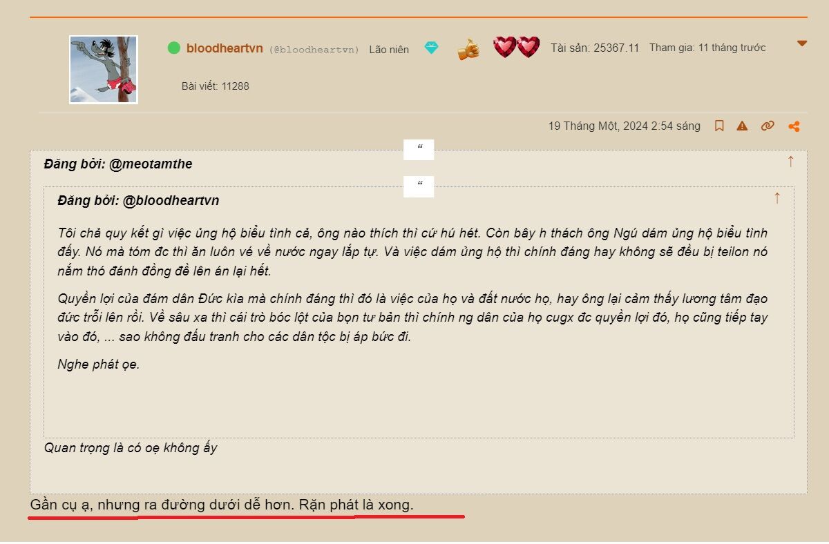 Ho ho, sử dụng 1 đống ngôn ngữ chửi đổng các thành viên khác mà không bị xử lý thì biết là chẳng ai có quyền đuổi rồi. Nẫu