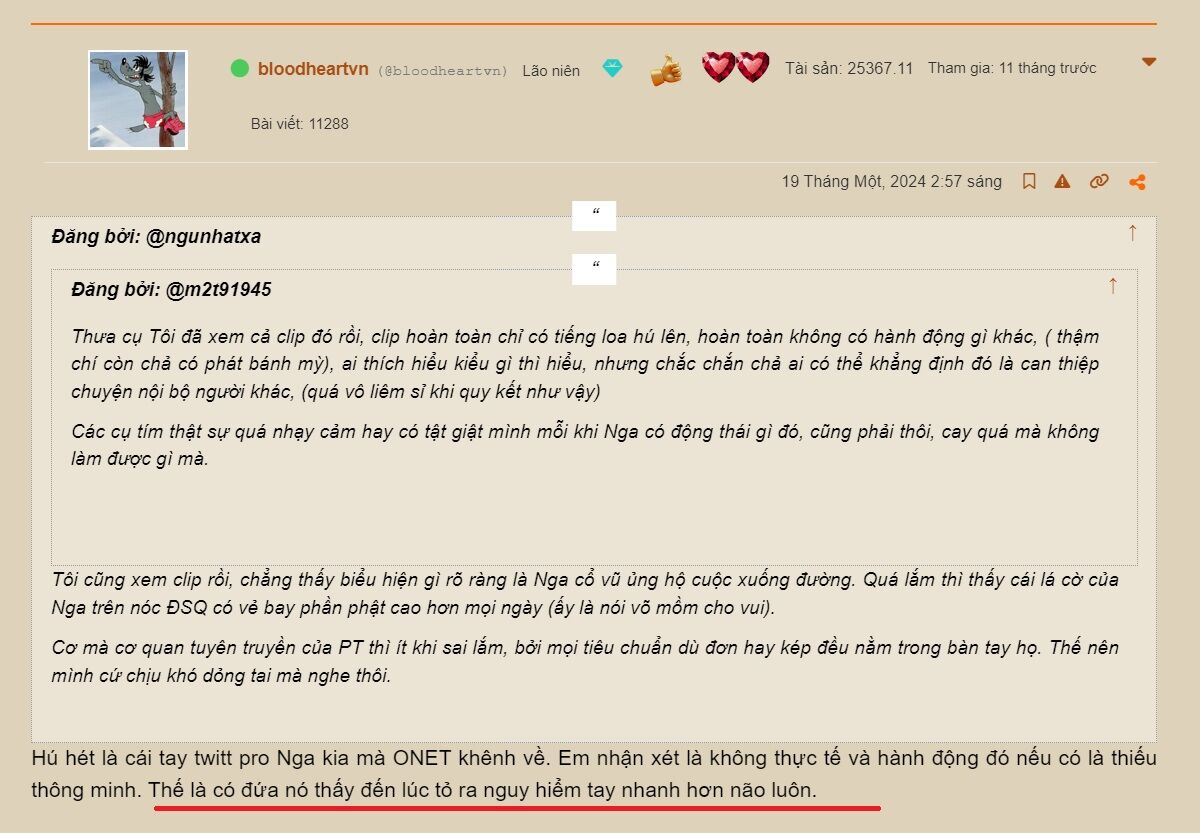 Các cụ tím thật sự quá nhạy cảm hay có tật giật mình mỗi khi Nga có động thái gì đó, cũng phải thôi, cay quá mà không làm được gì mà.