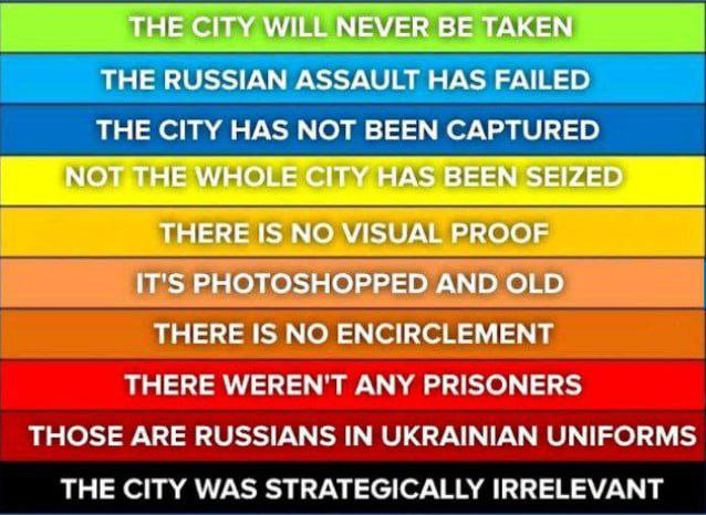 Đúng bài với các nơi khác, cứ theo thứ tự này sẽ biết Avdeevka đến giai đoạn nào khi nghe giọng văn của truyền thông PT.