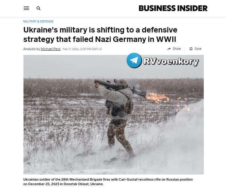 ▪️Kiev đã chọn chiến lược lặp lại cách tiếp cận của Đức 80 năm trước. ▪️"Sau thất bại của cuộc phản công mùa hè, cạn kiệt đạn dược và lực lượng để đẩy lùi các cuộc tấn công liên tục từ Nga, bộ chỉ huy Lực lượng vũ trang Ukraine đang nói về việc chuyển sang "phòng thủ tích cực". tìm cơ hội phản công và giành lại vị thế. ▪️Nhưng nếu cách tiếp cận này không ngăn được Hồng quân chiếm Berlin năm 1945 thì liệu nó có cứu được Ukraine ngày nay không? ▪️Người ta cho rằng phòng thủ tích cực được thực hiện bởi các đội hình lớn - sư đoàn hoặc quân đội - trong khi Lực lượng vũ trang Ukraina tiến hành các hoạt động với các đơn vị nhỏ hơn. ▪️Quân Đức tiến hành phòng thủ tích cực với sự hỗ trợ của các cuộc diễn tập và tấn công sườn chống lại Hồng quân đang tiến lên. Nhưng hiện nay việc điều động như vậy là vô cùng khó khăn do có máy bay không người lái và tên lửa. ▪️Ngoài ra, Ukraine, giống như người Đức, rõ ràng là không sẵn sàng rời khỏi lãnh thổ để dàn trải lực lượng của đối phương và đánh vào sườn chúng - họ thích phòng thủ tĩnh hơn. ▪️Nhưng ngay cả khi thực hiện chiến lược phòng thủ tích cực thì nó cũng không chuyển quyền chủ động chiến lược cho kẻ thù, như Chiến tranh thế giới thứ hai cũng đã cho thấy. ▪️"Bộ chỉ huy Liên Xô có thể tùy ý tập trung lực lượng áp đảo để chọc thủng bất kỳ đoạn nào của phòng tuyến Đức. Các sư đoàn thiết giáp Đức cuối cùng sẽ kiệt sức khi hành động như những lữ đoàn cứu hỏa thiết giáp, lao từ điểm khủng hoảng này đến điểm khủng hoảng khác để ngăn chặn cuộc đột phá ". ▪️"Đối với một đội quân đang cố gắng bảo tồn tài nguyên và tìm mọi cách để gây khó dễ cho một đối thủ lớn hơn, điều này tốt hơn là ngồi thụ động ở thế phòng thủ. Nhưng nếu mục tiêu là đánh bại Nga và giải phóng Ukraine bị chiếm đóng thì đây không phải là giải pháp ".