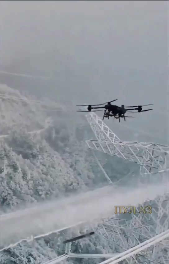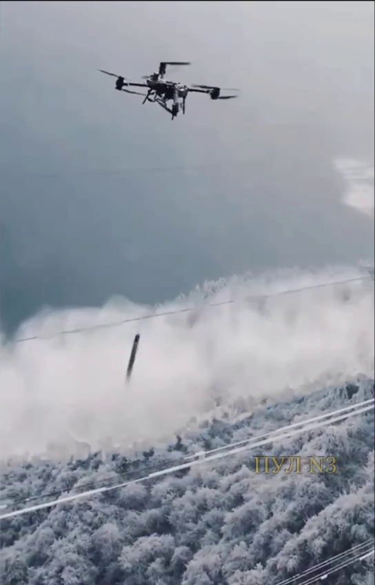 Người Trung Quốc cũng nghĩ ra nhiều trò hay. Họ dùng UAV có thanh sắt được buộc dây, rồi lái UAV, dùng thanh sắt đập, làm sạch các đường dây tải điện khỏi băng tuyết bám dính.
