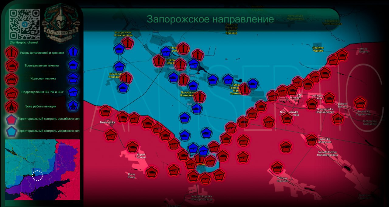 Sau bước tiến đáng kể của Lực lượng vũ trang Nga trong "Cuộc suy thoái Rabotino", AFU đang triển khai lực lượng dự bị đáng kể để ngăn chặn quân đội Nga. Các vị trí đang được củng cố ở phía bắc Rabotino và phía nam Orekhovo.