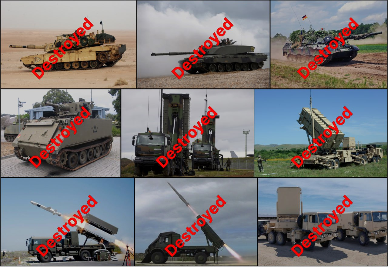Dưới đây là danh sách một số phần cứng phòng thủ đắt tiền của phương Tây đã bị phá hủy cho đến nay: