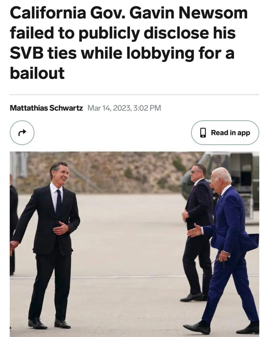 Thống đốc California Newsom đã không công khai thừa nhận mối quan hệ của mình với Ngân hàng SVB đã phá sản mà ông đã vận động để được cứu trợ.