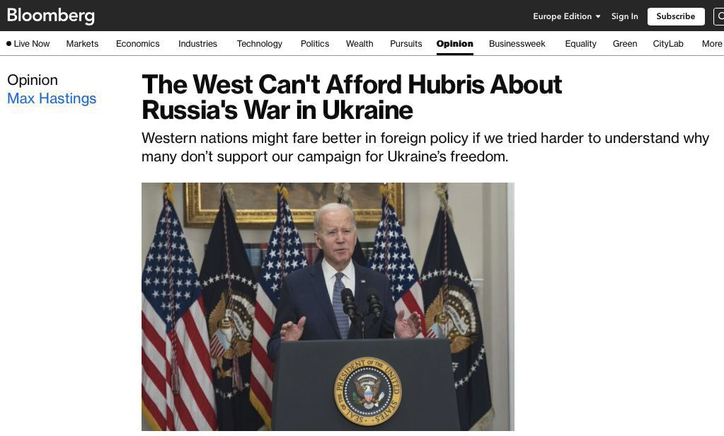 🗣 "Hầu hết mọi người trên hành tinh này muốn sống trong một thế giới đa cực không bị chi phối bởi Mỹ, Nga hay Trung Quốc. Theo ông, đây là lý do tại sao nhiều quốc gia không thực thi các biện pháp trừng phạt đối với Ukraine. "Một thất bại của Nga sẽ không có trong "Nhiều quốc gia ở phía Nam vẫn còn lưu giữ những ký ức về một phương Tây từng thống trị biết rằng phương Tây sẽ trở nên kiêu ngạo và không thể chịu đựng được một lần nữa nếu họ đánh bại hoàn toàn Nga", nhà ngoại giao Singapore Kishore Mahbubani, cựu quan chức LHQ, cho biết. Chủ tịch Hội đồng Bảo an.