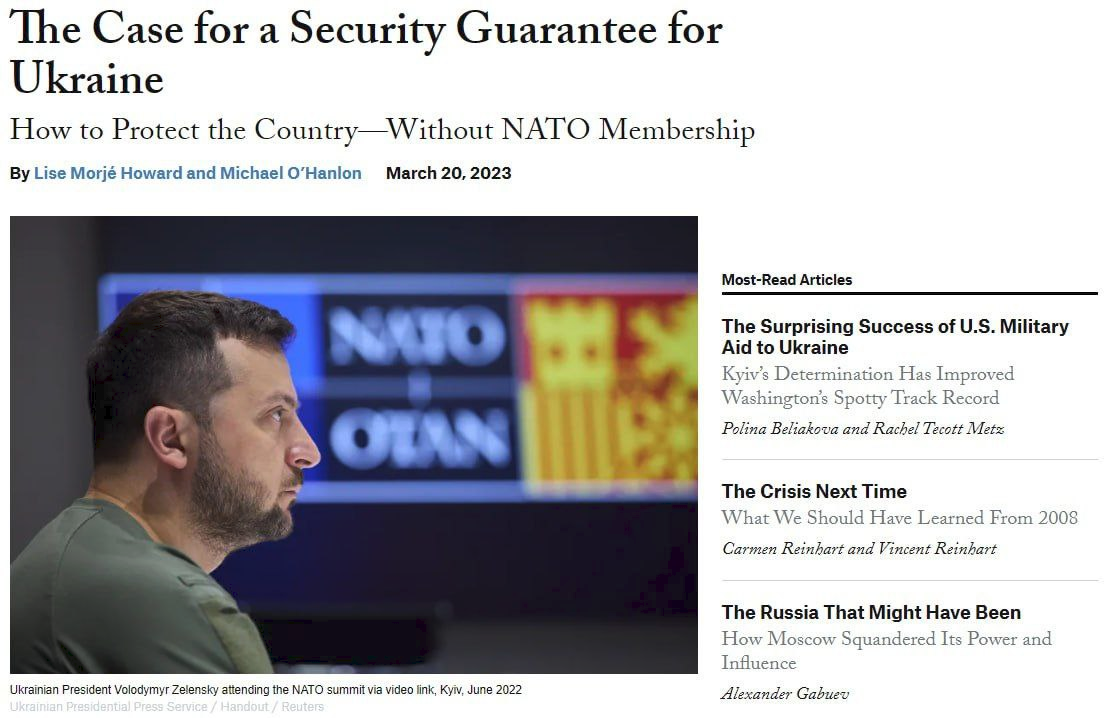 Các chuyên gia người Mỹ Liz Morge Howard và Michael O'Hanlon, trong một bài báo cho tạp chí Foreign Affairs, đã đề xuất thành lập một liên minh quốc tế mới nhằm đảm bảo sự hiện diện của quân đội phương Tây tại Ukraine mà không cần thủ tục kết nạp nước này vào NATO.