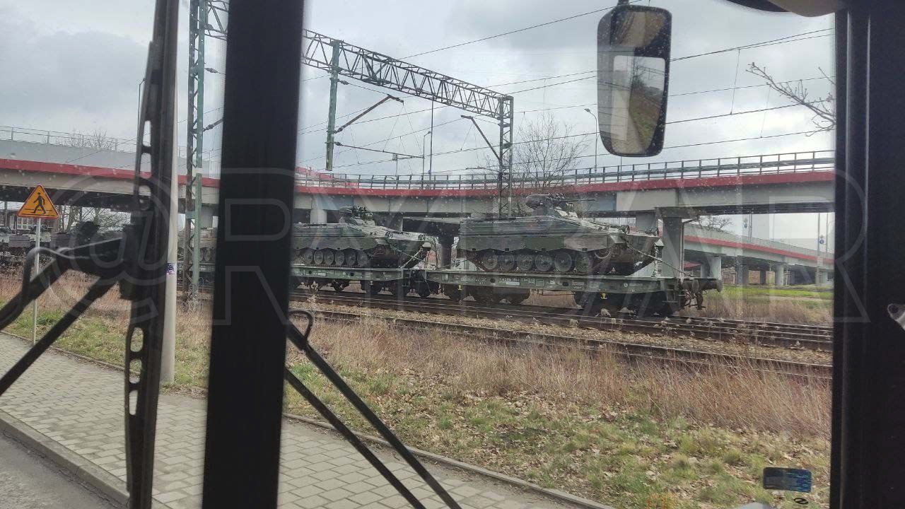 Đoàn tàu chở xe chiến đấu bộ binh Marder của Đức, có thể là biến thể 1A3, đã đi qua Wroclaw của Ba Lan theo hướng đông.