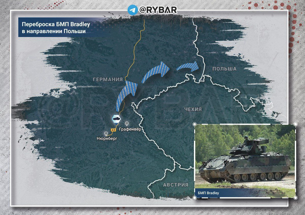 🔻Không rõ điểm cuối của tuyến đường: đoàn xe có thể đi đến bãi tập gần Grafenwöhr ở phía bắc, và hướng tới Ba Lan, sau đó di chuyển đến Ukraine. Trước thềm cuộc phản công được công bố, các nước phương Tây đã tăng tốc chuẩn bị cho Lực lượng Vũ trang Ukraine và đẩy nhanh việc cung cấp vũ khí và thiết bị quân sự.