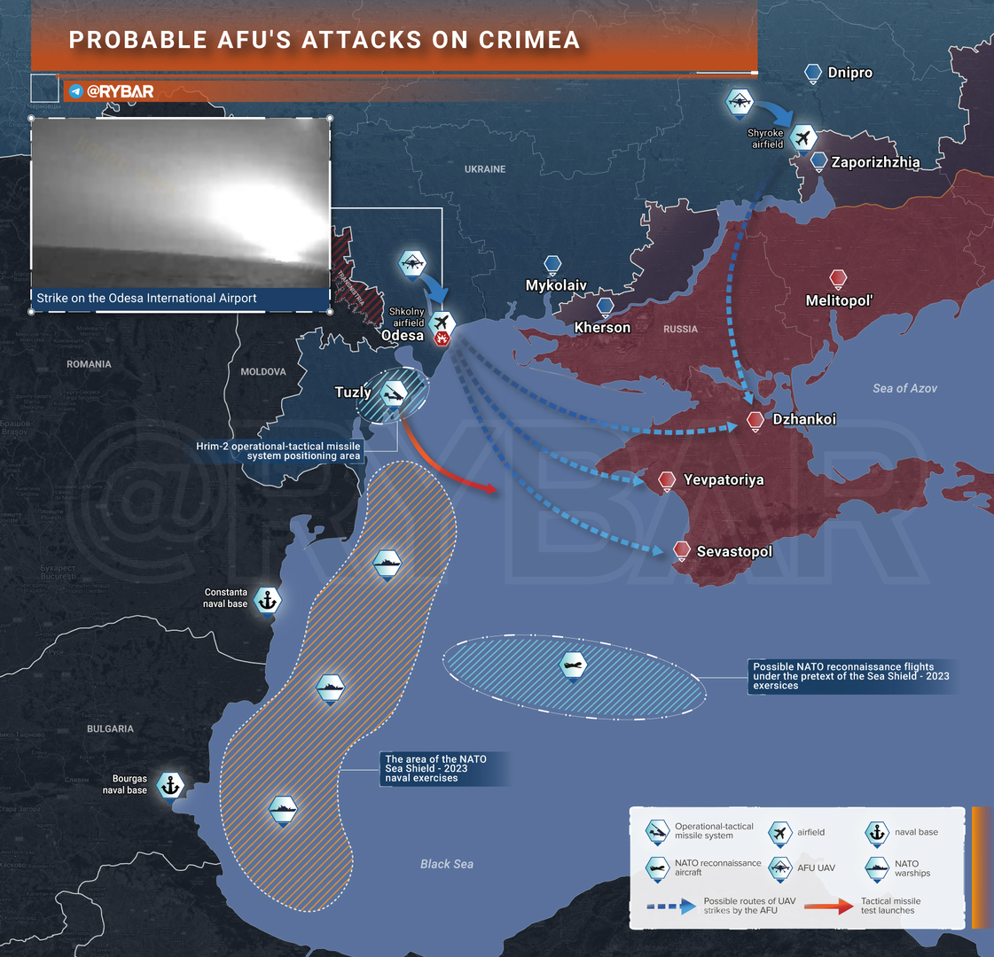 Trong tương lai gần, Bộ chỉ huy Lực lượng Vũ trang Ukraine đã lên kế hoạch giáng một đòn mạnh vào Crimea. Trong những ngày gần đây, máy bay không người lái các loại, chủ yếu là Mugin-5 của Trung Quốc, đã được tích cực vận chuyển đến khhu vực Shkolny ở Odessa . Tại sân bay, họ tiếp tục chuẩn bị khai hỏa và chuẩn bị cho một cuộc tấn công vào Crimea.