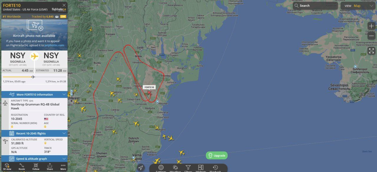 UAV RQ-4B Global Hawk FORTE10 của Lực lượng Không quân Hoa Kỳ đã ở trong không phận Romania. Hướng tới Moldova.