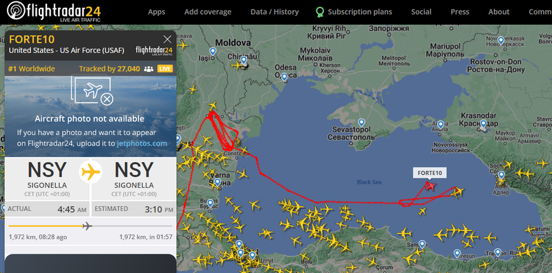 UAV RQ-4B Global Hawk FORTE10 của Lực lượng Không quân Hoa Kỳ đã ở trong không phận Romania. Hướng tới Moldova.