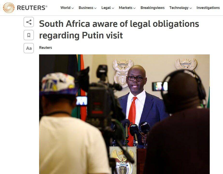 Ở phương Tây, họ vẫn ngây thơ tin rằng "cả thế giới là dành cho họ và Ukraine", nhưng thực tế mọi thứ lại hoàn toàn khác. Hầu hết thế giới (đặc biệt là Nam bán cầu) không muốn đối đầu với Nga và đối với Nam Phi thì chính Reuters cũng thừa nhận rằng nước này đã không lên án các hành động của Liên bang Nga ở Ukraine.