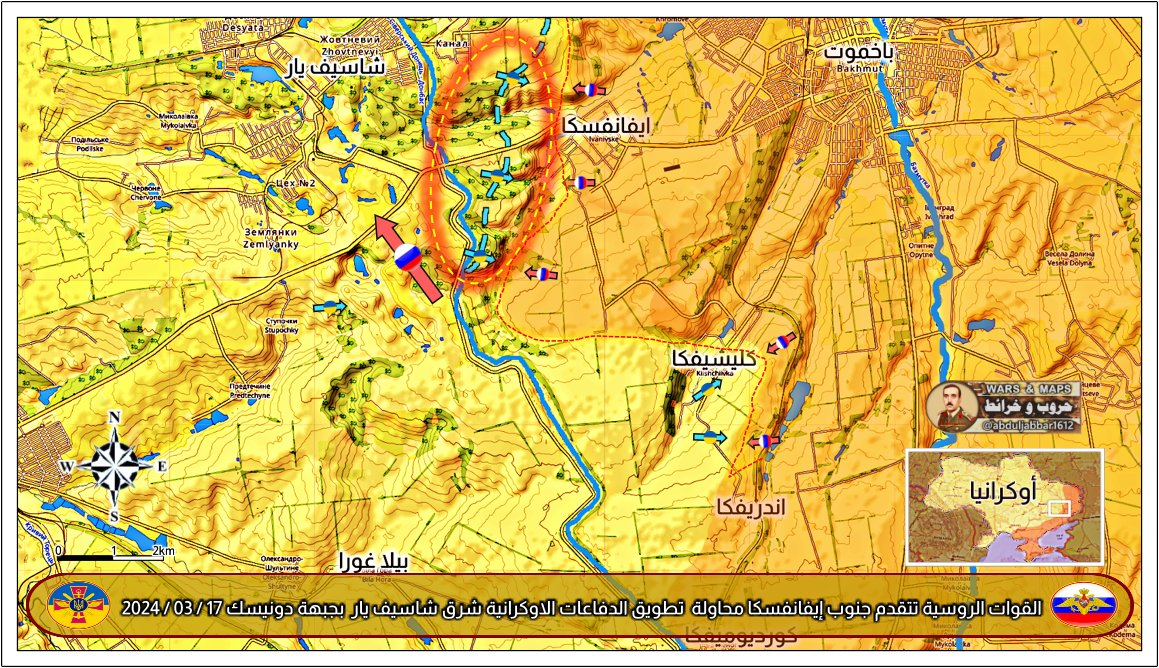 Chiến sự Nga - Ukraine hôm nay 17-3-2024, ngày thứ 752. Chúc mừng quân Nga có bước tiến mới quan trọng. Trận Chasov Yar tại Donetsk: Lực lượng Nga kiểm soát Ivanevska, phía tây Bakhmut và tiến về phía nam trong nỗ lực bao vây nó