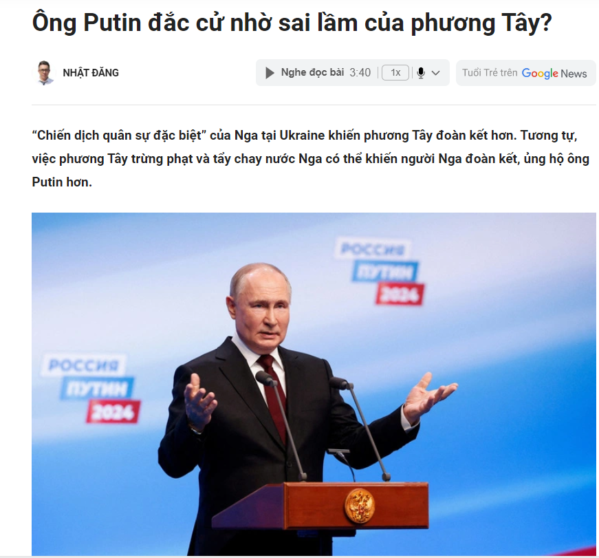 Cuộc bầu cử tổng thống Nga năm 2024: kỷ lục cử tri đi bầu!