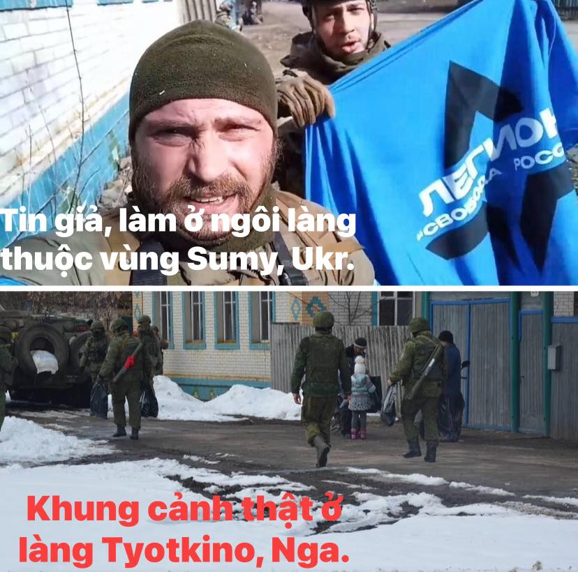 Tại ngôi làng này, vào mùa xuân năm 2022, một đội ngũ của Lực lượng Vũ trang Nga đã phân phát các gói thực phẩm cho người dân địa phương ngay đối diện với cùng một ngôi nhà nơi những kẻ phá hoại PR Ukraine đã quay cảnh dàn dựng lố bịch của họ.