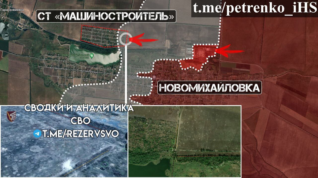 Bản đồ từ nguồn U về Novomikhailovka. Mặc dù chỉ thừa nhận Nga chiếm đc 1 chút ở phía bắc, nhưng trên bản đồ lại thể hiện việc quân Nga đang tiến công khu vực phía tây của ngôi làng
