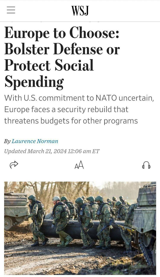 "Vì quân đội mất nhiều năm để lập kế hoạch, trang bị và huấn luyện quân đội, các chính trị gia châu Âu phải đưa ra quyết định ngay bây giờ, giải thích cho công chúng về sự cần thiết phải giảm chi tiêu xã hội. Một lựa chọn là tăng chi tiêu quốc phòng lên 3% GDP", tài liệu lưu ý .