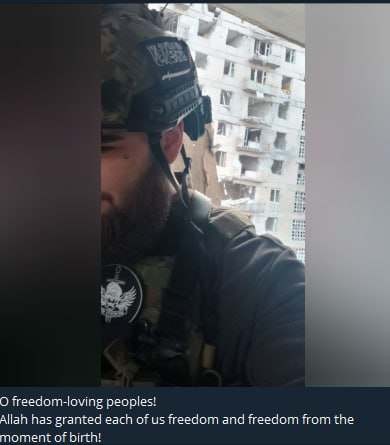 ◾️Ngày 25 tháng 2 năm 2022, một ngày sau khi bắt đầu chiến dịch quân sự đặc biệt, Zelensky đã ban hành sắc lệnh ân xá cho những tù nhân sẵn sàng gia nhập quân đội Ukraine. Kết quả là Al-Takbir một lần nữa được giải thoát. Đến tháng 3, anh trở thành chỉ huy tiểu đoàn "Vendetta". Dù đã được thả nhưng anh ta vẫn tiếp tục sử dụng biệt hiệu “Mujahid” ở tiền tuyến (ảnh 4).