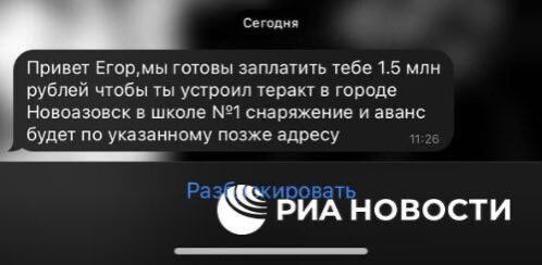 Những người không rõ danh tính viết thư cho những người trẻ tuổi trên Telegram và đề nghị tổ chức một vụ xả súng “giống như ở Crocus”, nhưng chỉ ở một trong những trường học địa phương. Họ hứa sẽ cất thiết bị và tiền vào nơi che dấu - điều này cho thấy rằng còn rất nhiều kẻ phá hoại “đang ngủ” trên lãnh thổ DPR, những kẻ có quyền truy cập vũ khí miễn phí.