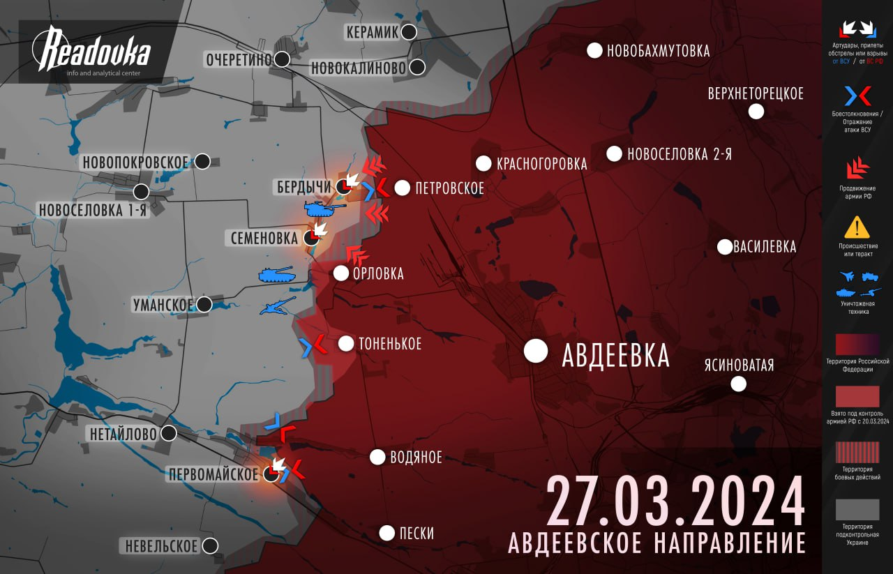 Một sợi dây xích không bị xiềng xích - bản phân tích chi tiết của Readovka về tình hình trên hướng Avdeevsky của mặt trận vào tối ngày 27 tháng 3