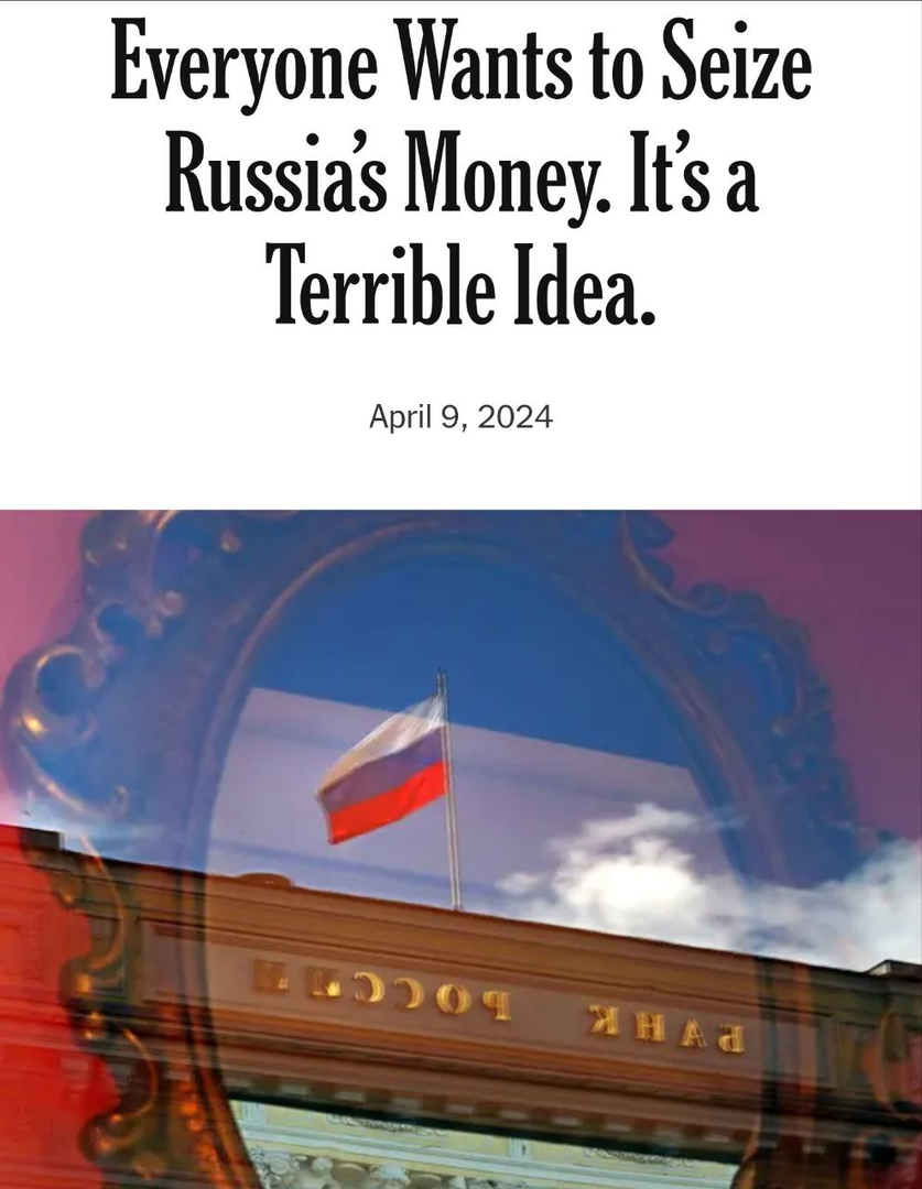 - Việc tịch thu tài sản của Nga là mối nguy hiểm cho nền kinh tế Mỹ vì các nước khác sẽ coi đó là một vụ cướp.