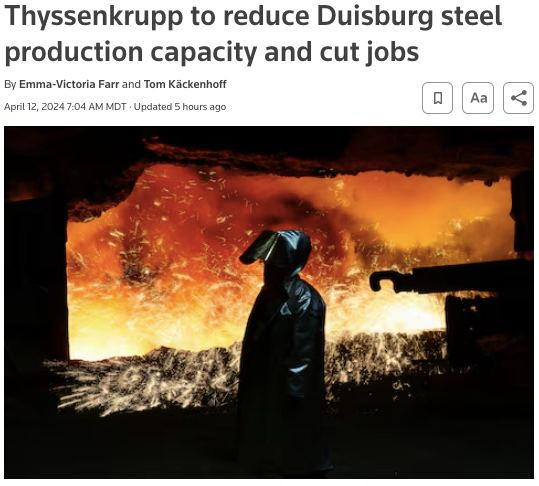 Thyssenkrupp, một công ty mang tính biểu tượng của Đức sẽ cắt giảm hơn 20% sản lượng và giảm lực lượng lao động. Công ty có khoảng 27.000 người, hầu hết làm việc tại cơ sở sản xuất thép lớn nhất châu Âu ở Duisburg.