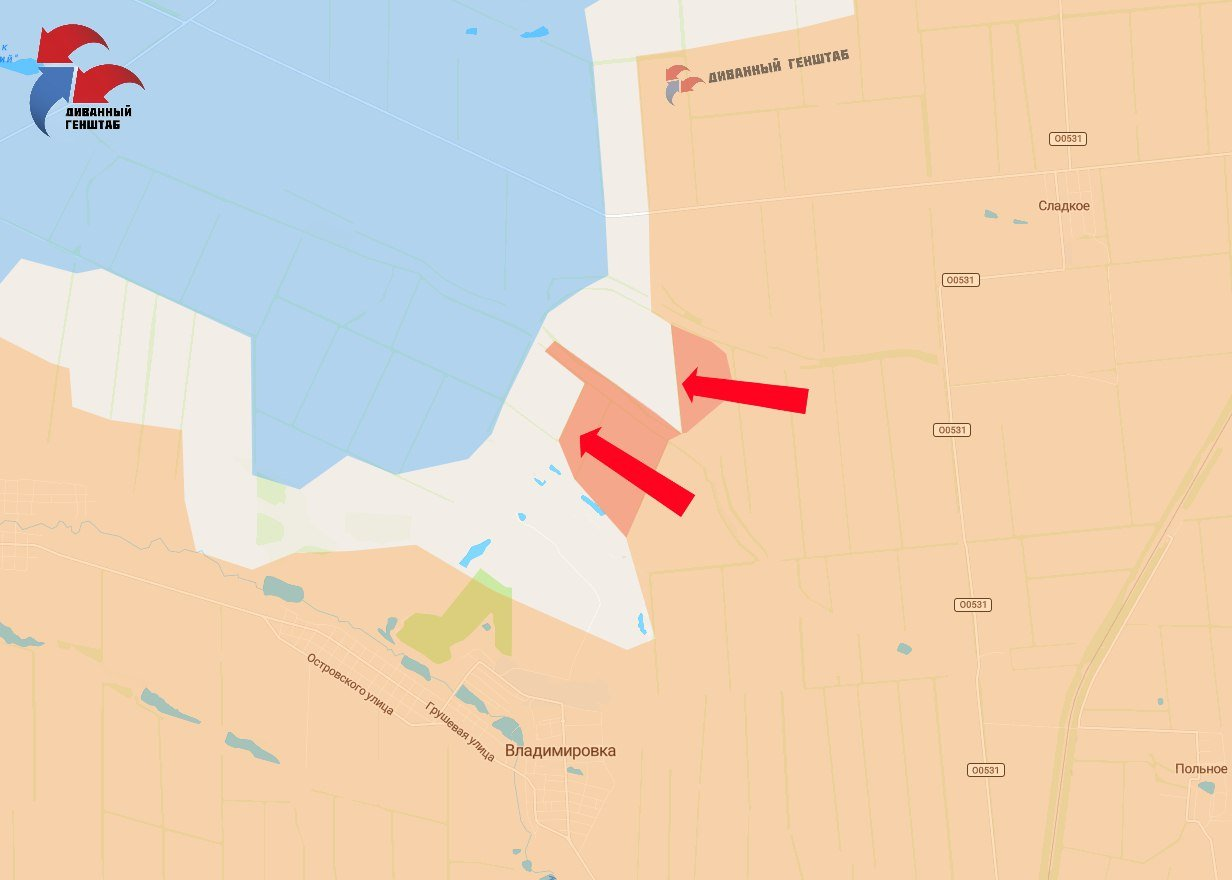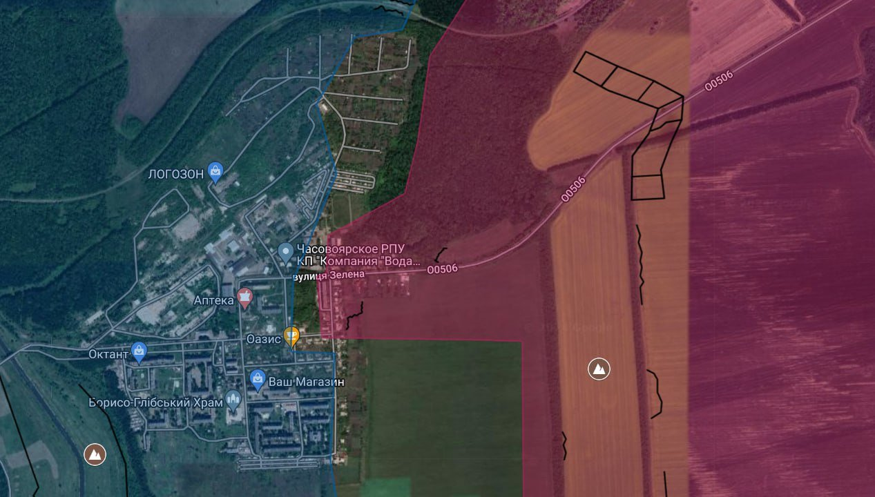 "Tại khu vực Kanal ở Chasov Yar. Bất chấp đoạn video xuất hiện tại Sư đoàn Dù 98, nơi các biểu tượng đang bị chặn ở lối vào khu vực (video lưu trữ), video của chúng tôi vẫn tiếp tục ở trong chính tòa nhà. Các ngôi nhà nông thôn ở phía bắc quận nằm trong vùng xám - không bên nào có quyền kiểm soát. Nhà để xe ở dacha cũng đã chuyển sang vùng xám; thật không may, nhóm của chúng tôi (Nga) tiến vào đó đã bị đánh thiệt hại (bản đồ).