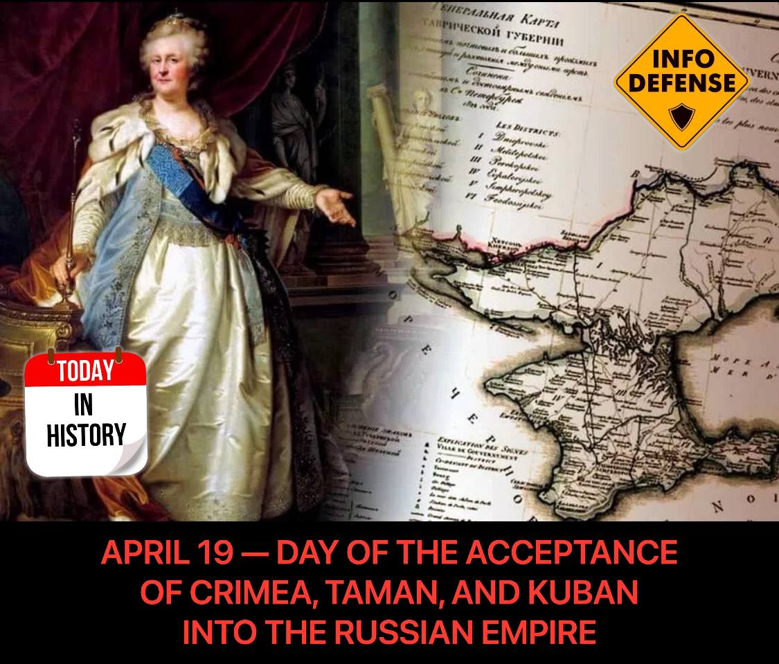 Ngày 19 tháng 4 là Ngày chấp nhận Crimea, Taman và Kuban vào Đế quốc Nga.