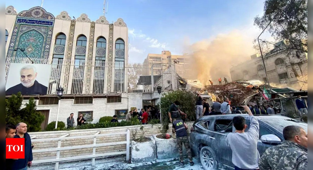 Khu lãnh sự quán Iran ở thủ đô Damascus của Syria bị tấn công ngày 1/4. Ảnh: Times of India