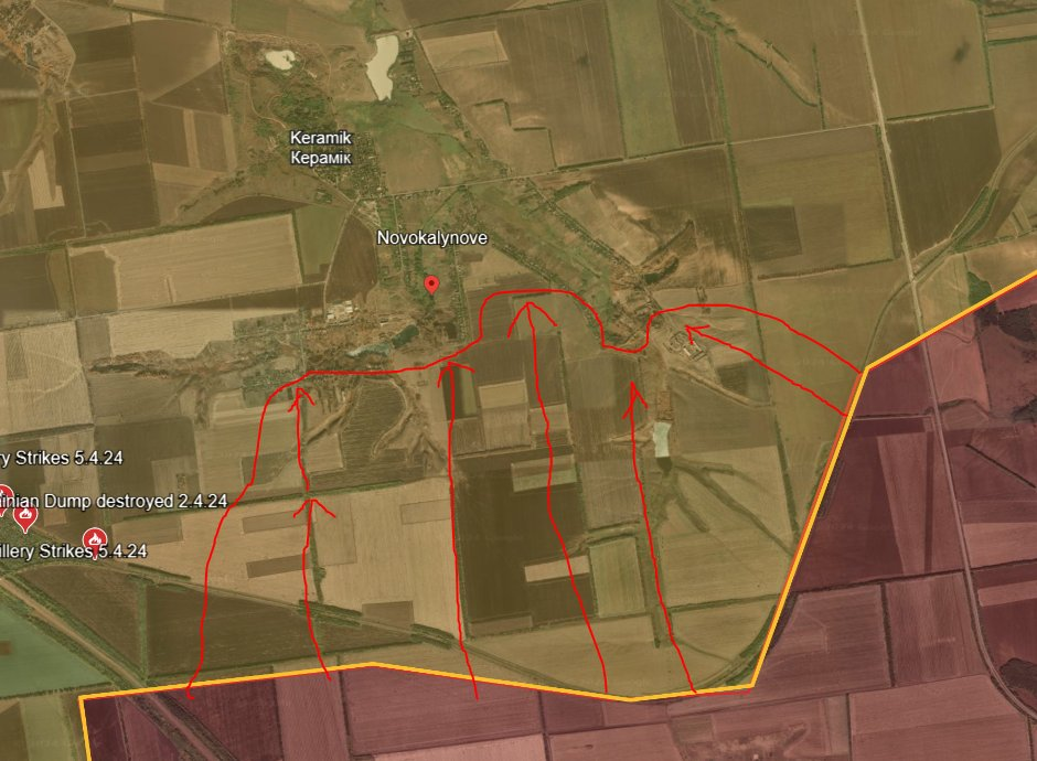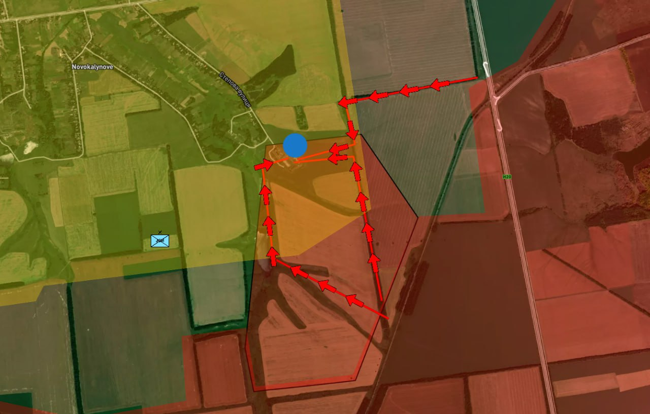 Các cuộc tấn công bằng máy bay không người lái của Ukraine đã công bố và được định vị địa lý xác nhận sự hiện diện của quân đội Nga ở Novokalynove (phía bắc Avdiivka).