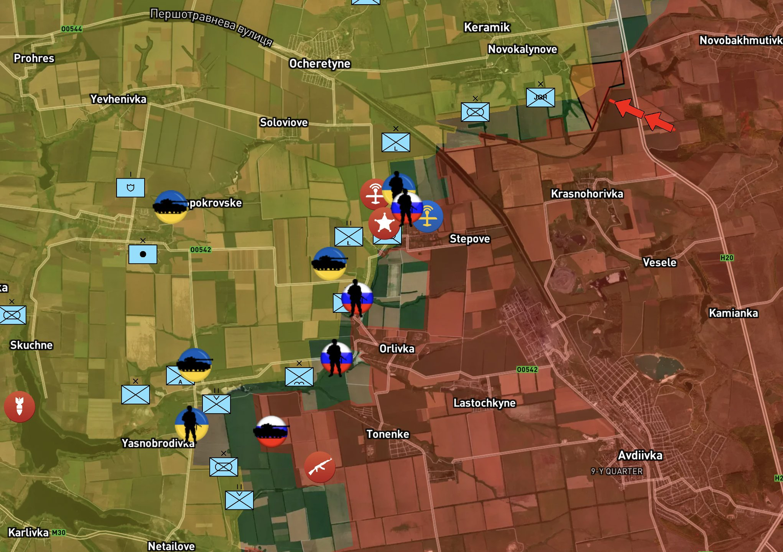 Sau đợt chuẩn bị pháo binh gần đây nhằm vào khu Dacha gần Novokalynove, lực lượng Nga đã tiến hành một cuộc tấn công trên bộ và chiếm các trang trại ở phía bắc khu định cư cũng như các cánh đồng dọc theo tuyến đường sắt. Trận chiến Novokalynove ở phía bắc Avdiivka đã bắt đầu.