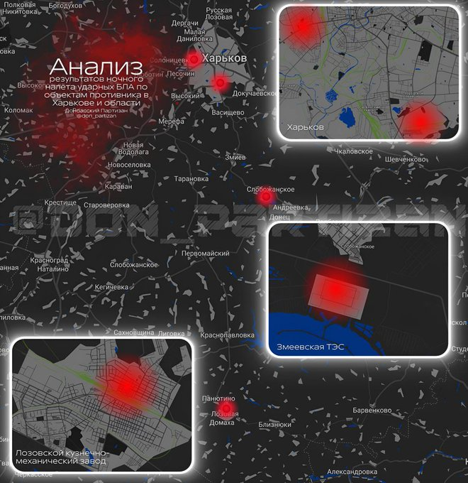 Tối nay, các lực lượng Nga đã thực hiện một cuộc tấn công quy mô lớn bằng máy bay không người lái cảm tử kamikaze vào các mục tiêu của kẻ thù ở Kharkov và khu vực xung quanh. Các mục tiêu bao gồm cơ sở hạ tầng năng lượng, các tổ hợp quân sự-quốc phòng, các điểm triển khai lực lượng và tài sản của kẻ thù.