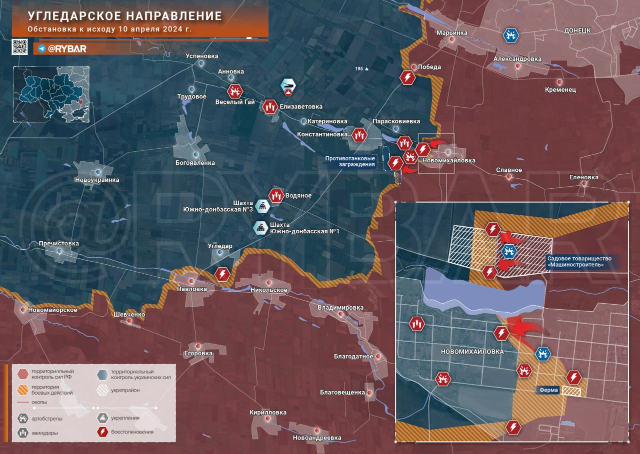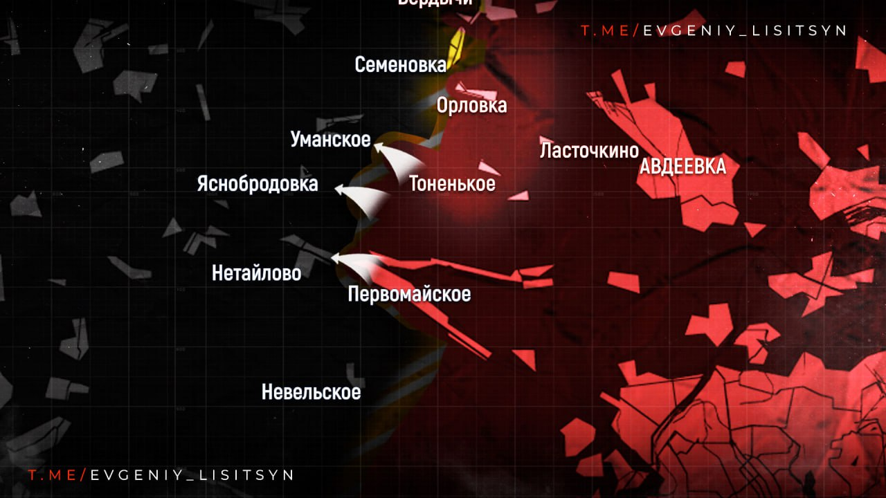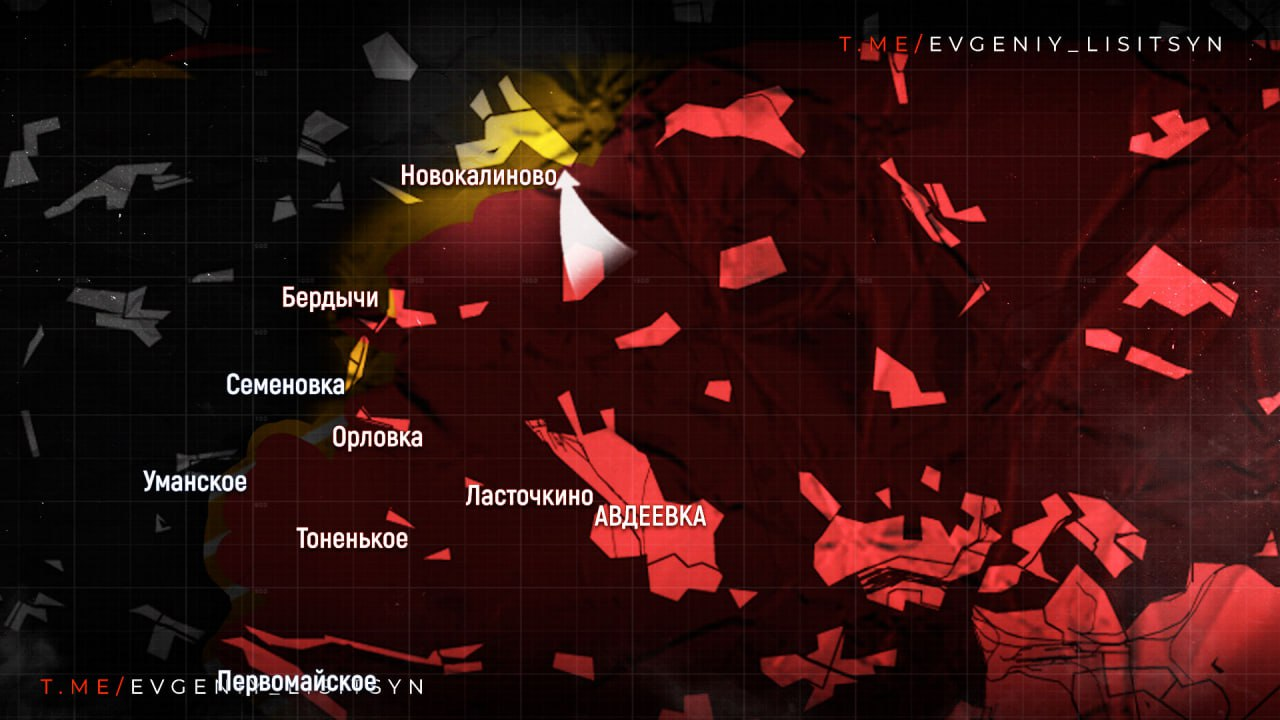 Theo hướng Avdeevsky, một cuộc tấn công bắt đầu vào làng Novokalinovo nhằm đảm bảo an ninh cho sườn phía bắc và chuẩn bị tiến xa hơn về phía tây. Các trận chiến giành Pervomaiskoe đã kết thúc thành công và các hoạt động bắt đầu ở Novomikhailovka, nơi Lực lượng vũ trang Nga tiến 200 mét về hướng tây. Ngoài ra, Lực lượng vũ trang RF đang đạt được tiến bộ trong việc hướng tới các khu định cư: Netailovo, Yasnobrodovka và Umanskoye.