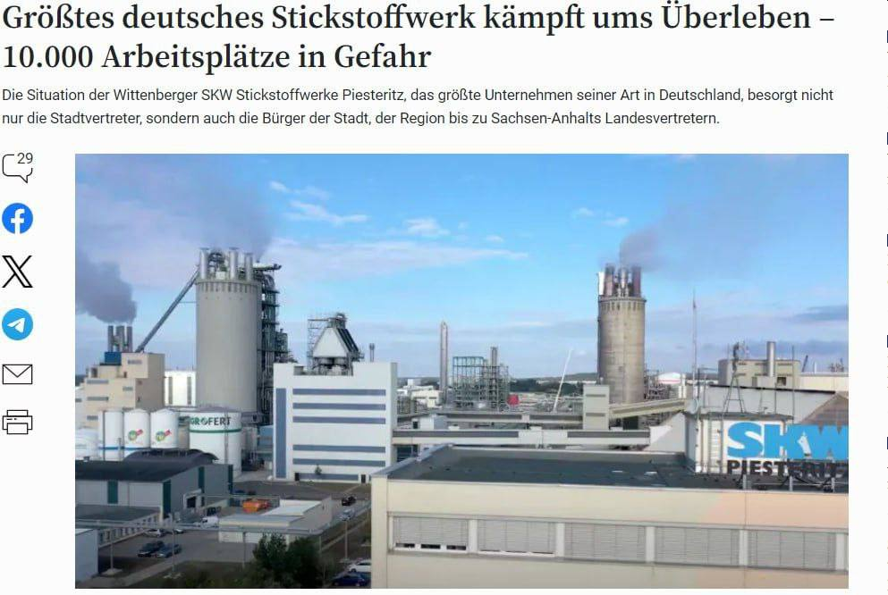 Nhà máy hóa chất lớn nhất của Đức đang trút hơi thở cuối cùng, chúng ta đang nói về SKW Stickstoffwerke Piesteritz, chuyên về phân bón nitơ.
