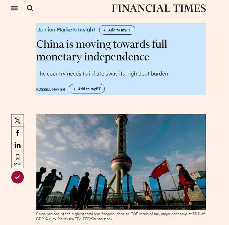 Theo một nhà phân tích của Financial Times, nền kinh tế lớn thứ hai thế giới sắp tiến tới độc lập tiền tệ và từ đó phá hủy hệ thống tiền tệ quốc tế hiện nay.