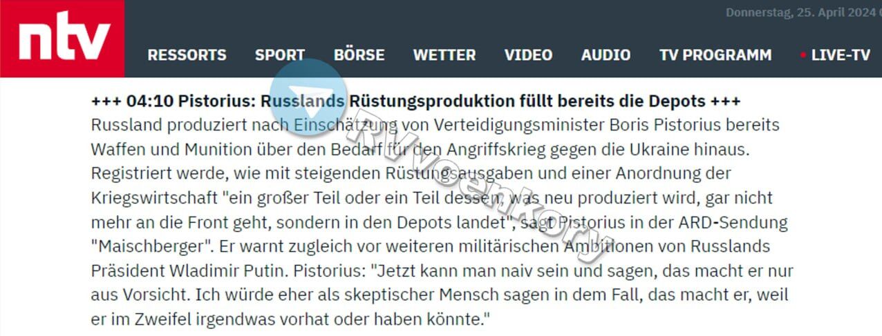▪️"Hầu hết hoặc một phần của những gì được sản xuất hiện nay không còn được đưa ra phía trước mà cuối cùng được đưa vào kho. Người ta có thể ngây thơ và nói rằng Nga làm điều này chỉ vì thận trọng. Là một người hoài nghi, tôi thà nói điều đó trong trường hợp này trường hợp Nga làm vậy vì họ đang lên kế hoạch gì đó”, Pistorius nói.